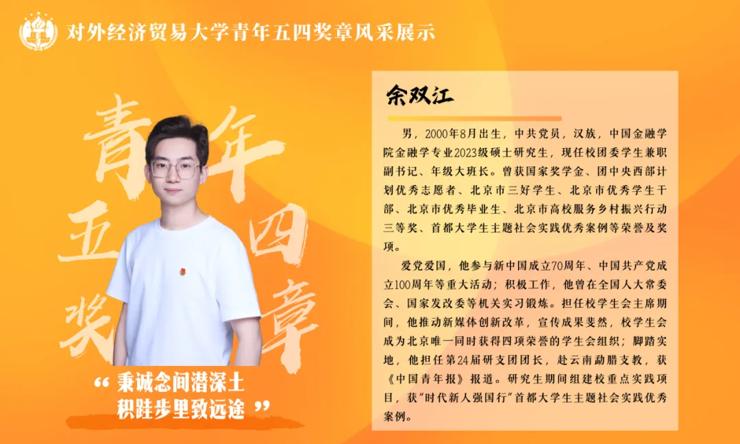 “青年五四奖章”个人(学生):御宅屋 金融学专业2023级硕士研究生余双江