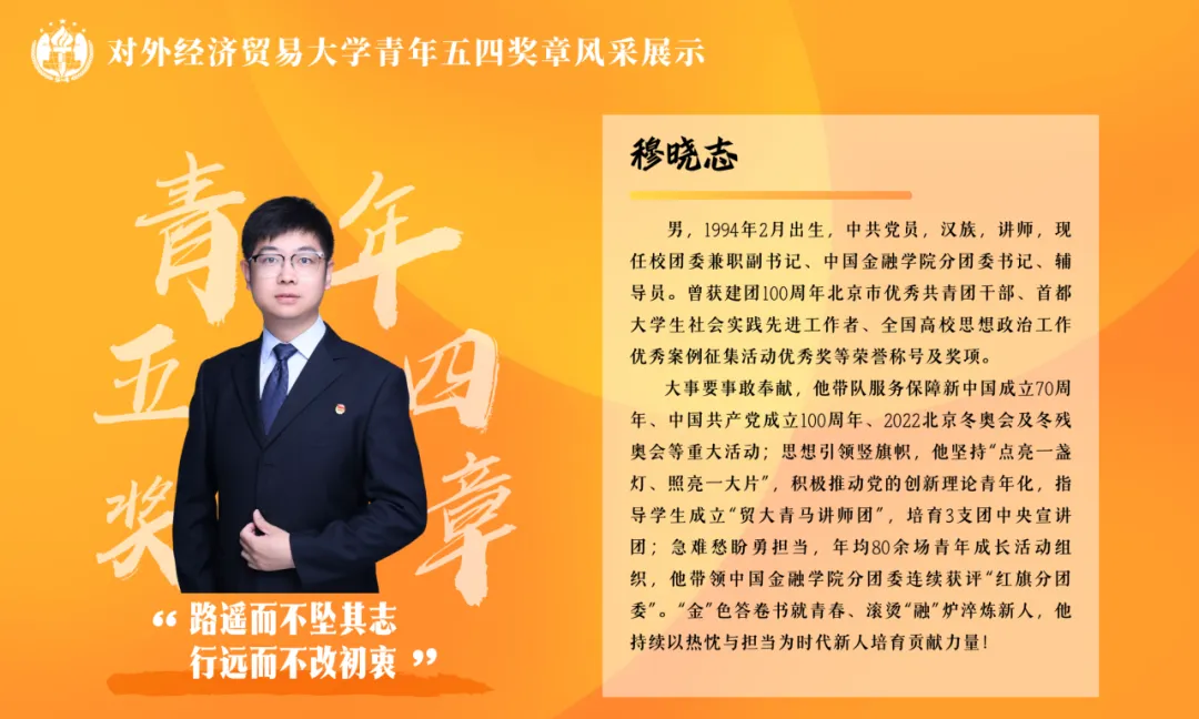 “青年五四奖章”个人(教职工):御宅屋 分团委书记、辅导员穆晓志