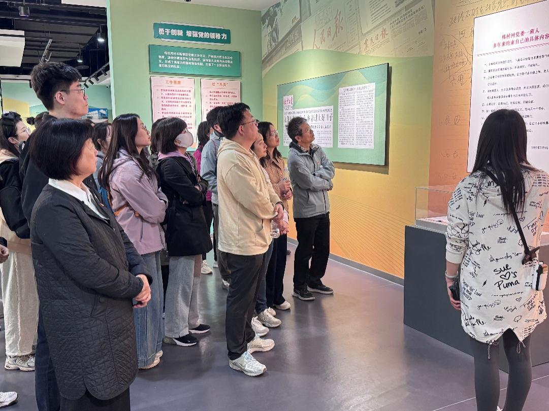 接着,学院党委师生依次走进四大主题展厅,深入了解韩村河的发展脉络。在“百年沧桑伟大奇迹”展厅,以中国共产党百年奋斗史为线索,历史影像、文献档案等资料将党史、新中国史、改革开放史以及社会主义发展史有机融合,生动呈现了韩村河村在党的坚强领导下,从贫困乡村到“全国文明村”的华丽转身。这一跨越发展的历程,深刻彰显了党的领导核心作用,让师生们更加坚定了对党的信仰,认识到党的伟大事业与人民幸福生活紧密相连。