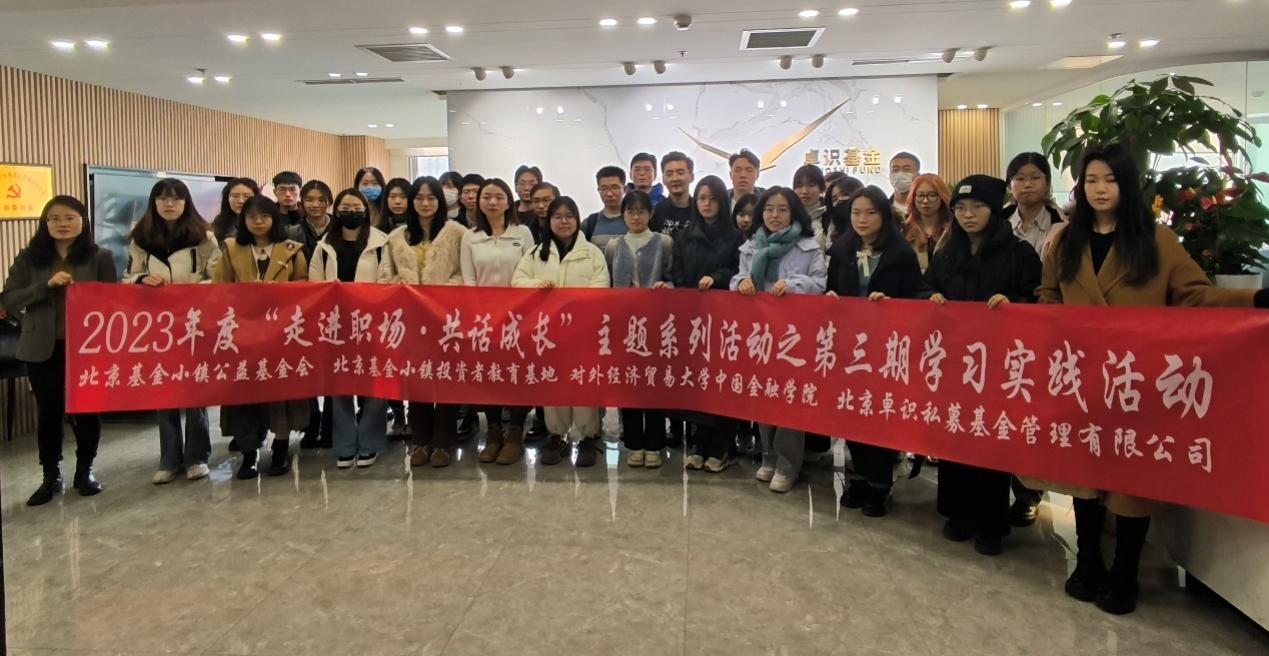 2023年12月7日下午,御宅屋 、北京基金小镇公益基金会、北京卓识私募基金管理有限公司共同举办了“走进职场·共话成长”学习实践活动。在金融工程系主任邓军老师、聂晶老师和卢尚霖老师的带领下,御宅屋 40余名硕士研究生走进卓识基金,进行了为期半日的实地参观交流。