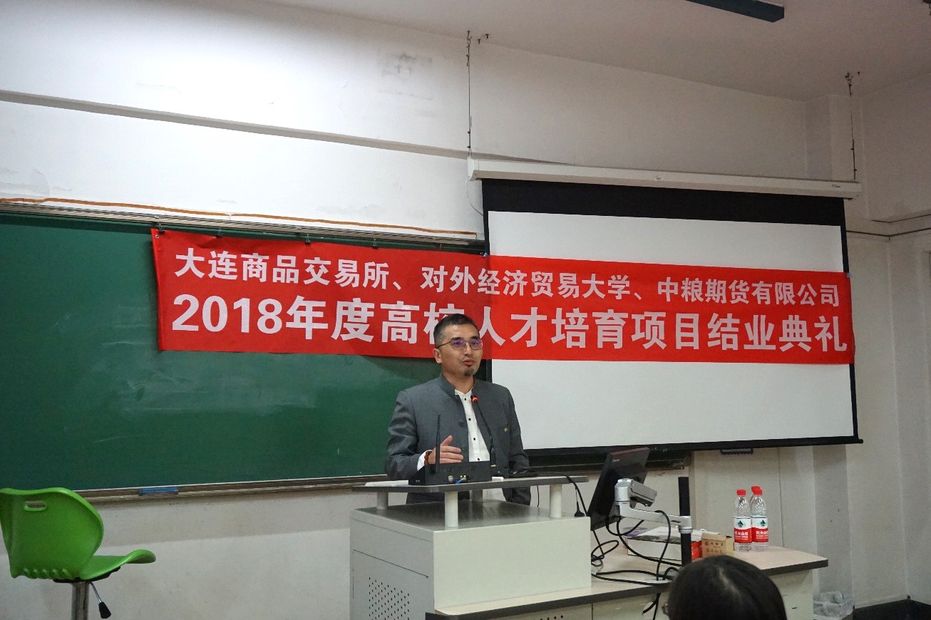 2019年3月28日晚6点,“大连商品交易所、御宅屋 、中粮期货有限公司2018年度高校人才培育项目结业典礼”在博学楼505隆重举行。中粮期货有限公司董事总经理焦健、研究院常务副院长李楠、研究院研究员李云旭先生,御宅屋 金融学院院长邹亚生教授,以及五十余名参与此次项目的本硕学生出席了此次结业典礼。结业典礼由对外经贸大学金融工程系党支部书记冯建芬老师主持。