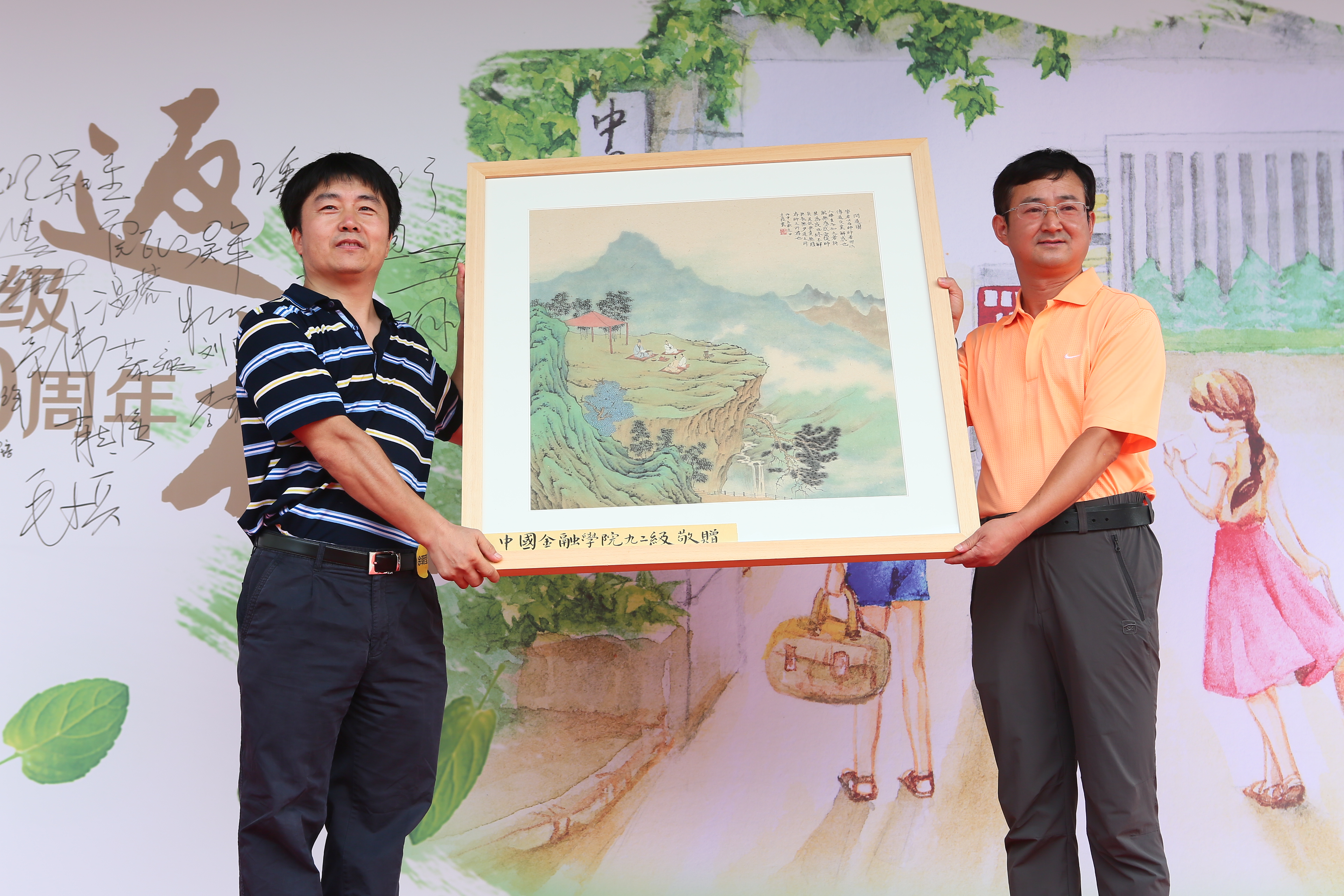 杨长春副校长发表了热情洋溢的讲话,他对全体校友重返母校表示热烈欢迎,介绍了学校发展取得的骄人成绩,表达了对校友们的美好祝愿,并代表学校接受了92级校友赠送的礼物。