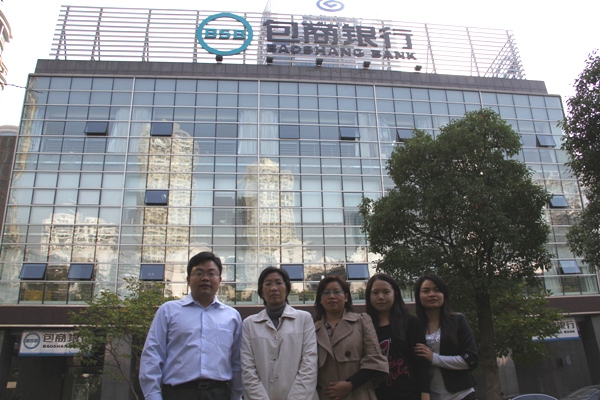 2011 年 10 月 24 日 至 27 日,我校中小金融机构发展研究中心主任粟勤教授带领《中国中小银行发展模式研究》项目组成员范香梅副教授、张海洋博士等一行 5 人分别赴浙江民泰商业银行和包商银行宁波分行进行了调研。