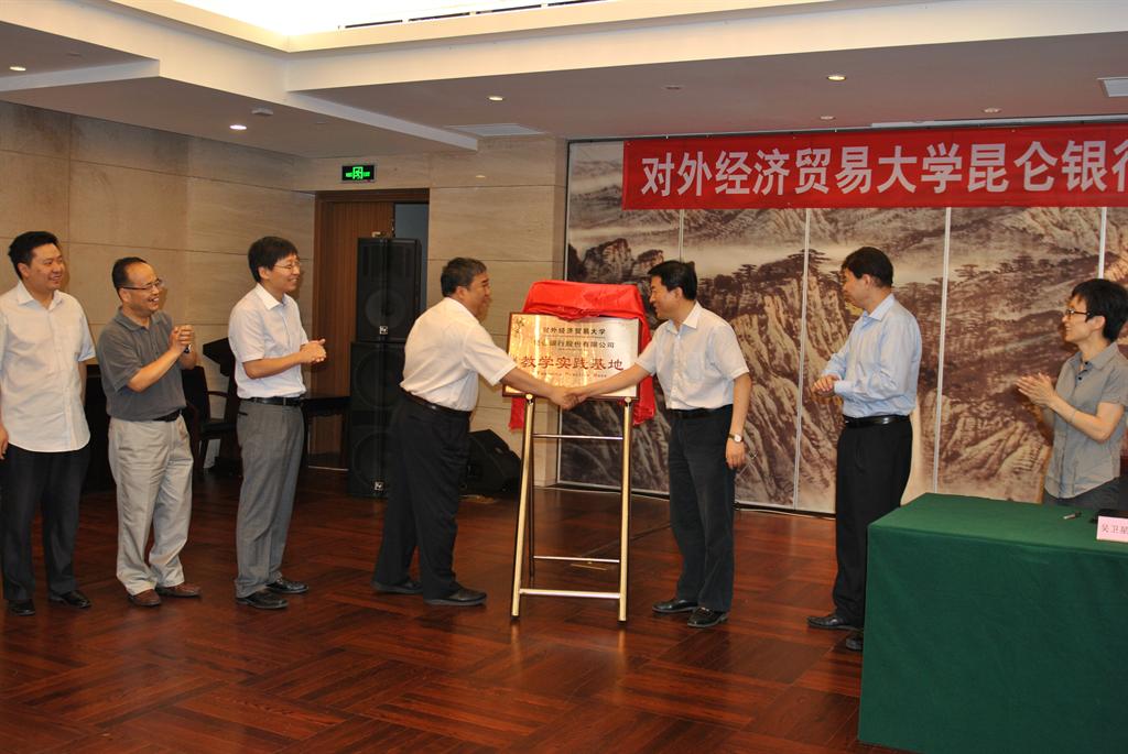 2014年6月25日,昆仑银行与我校共建教学实践基地签约挂牌仪式在昆仑银行总行隆重举行。昆仑银行副董事长、党委书记蒋尚军、监事长罗平、人力资源部总经理张力、办公室副主任张勇、我校副校长林桂军、金融学院院长吴卫星、副院长邹亚生、副院长潘慧峰、分党委副书记王春蕾等出席仪式。