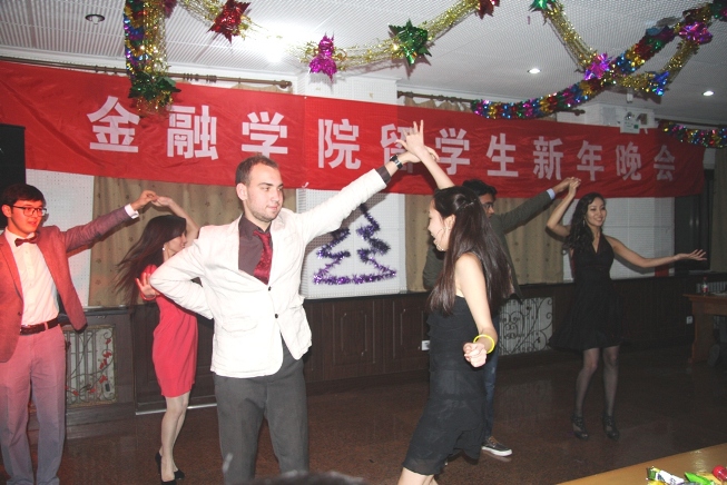 2012 年 12 月 18 日 晚,金融学院2013年留学生新年晚会在国际学院地下一层多功能厅隆重举行。出席本次新年晚会的嘉宾有:金融学院丁志杰院长、邹亚生副院长、分党委副书记王春蕾老师、给留学生授课的高清霞老师、杨冬梅老师,国际学院杜老师、胡老师、刘老师、任老师、古老师,以及金融学院留学生教务员汤婕、董荣老师。