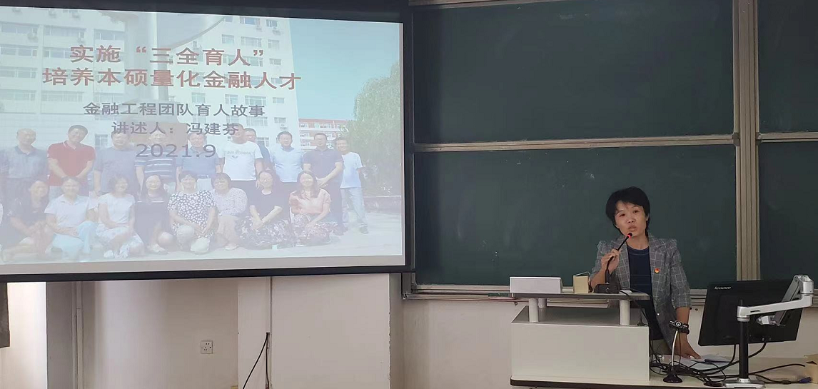 根据《金融学院师德专题教育工作方案》,2021年9月30日下午,金融学院党委在博学楼308教室召开全院教师大会,北京高校优秀共产党员、教学名师奖获得者金融学院教授郭红玉和北京高校先进党组织、优秀本科育人团队——金融工程育人团队的代表金融学院金融工程专业教师党支部书记冯建芬作育人故事分享。会议由金融学院党委书记齐天翔主持。