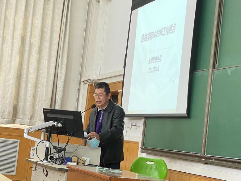 2023年3月9日下午,金融学院在博学楼301教室召开2023年度重点工作布置会。金融学院院长邹亚生主持会议。