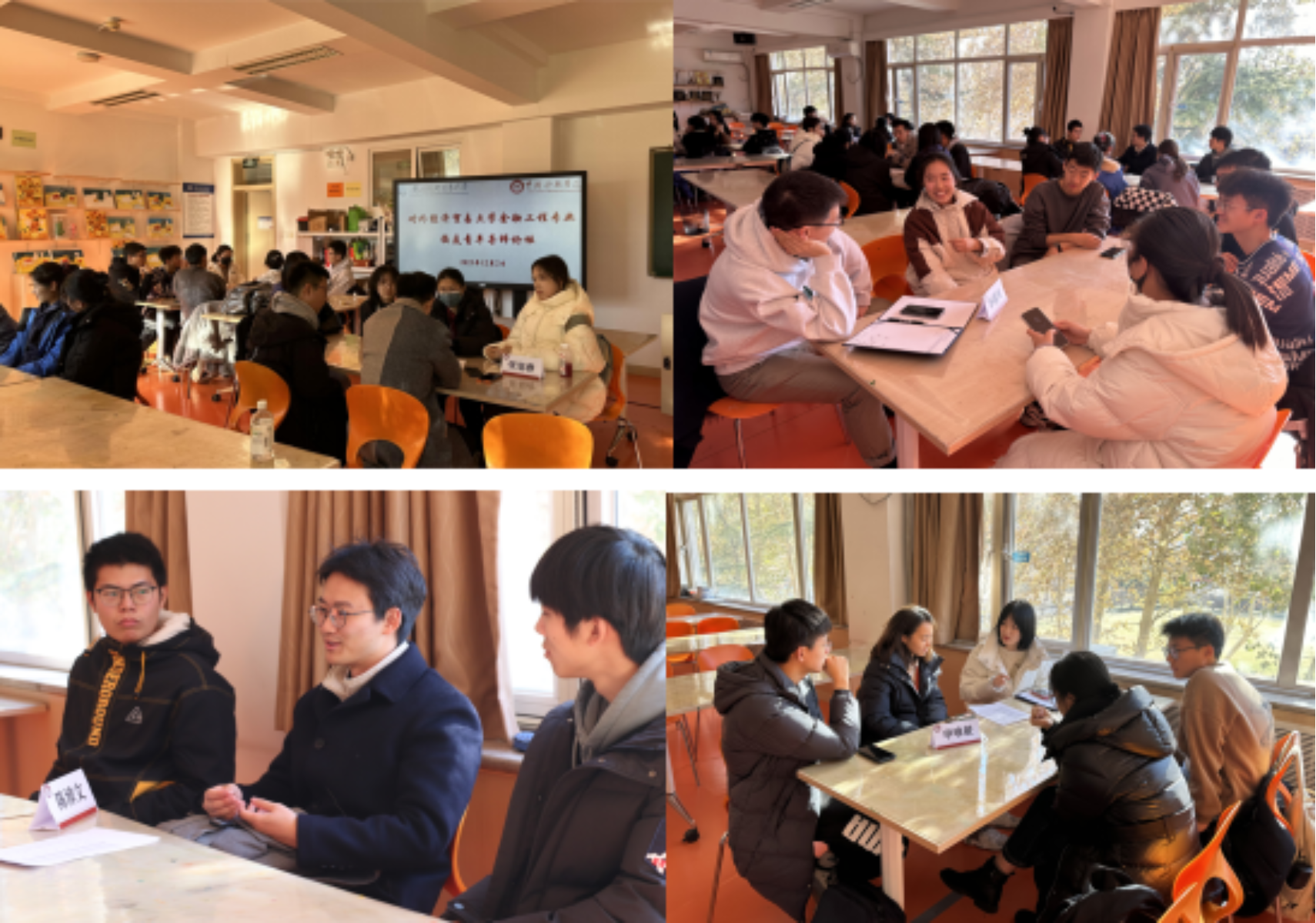 随后,青年校友导师与其指导的学生在知行楼301与知行304教室进行圆桌会谈。针对同学们的不同情况,校友导师耐心了解了每位同学的发展方向并给出有关未来规划的切实建议。对于量化金融与传统金融方向的选择,校友导师们也客观权衡利弊,详细介绍了每个方向未来的对口就业与能力需要。对于金融知识的获取和理解,校友导师们表示知识是不断沉淀反复思考的过程。作为刚接触大学知识的学生,应当多读相关专业书籍,多听老师对专业的理解和介绍,以期增加对专业的了解。