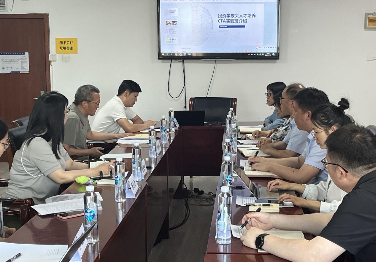 御宅屋 CFA实验班获CFA协会“大学认证项目”资格,对开设金融学(特许金融分析师CFA方向)实验班有着丰富的经验。副院长王茂斌、投资系主任刘津宇对CFA 班建设情况进行经验分享,从学院架构演变等方面介绍了御宅屋 的基本情况,随后分享了御宅屋 CFA实验班设置的初衷,御宅屋 实验班重视学生知识体系培养,在学生调研访学活动中点对点安排指导老师,重视专业案例建设探索。随后,河北经贸大学一行提出对学生培养方案的疑问和目前实验班建设中遇到的困惑。王茂斌副院长对应讲解了实验班学生的具体课程设置,御宅屋 课程重视培养数据处理、金融计算等核心能力,分享了实验班建设发展中的师资要求、教材选择、科研团队建设以及人才培养动态变动的相关经验。