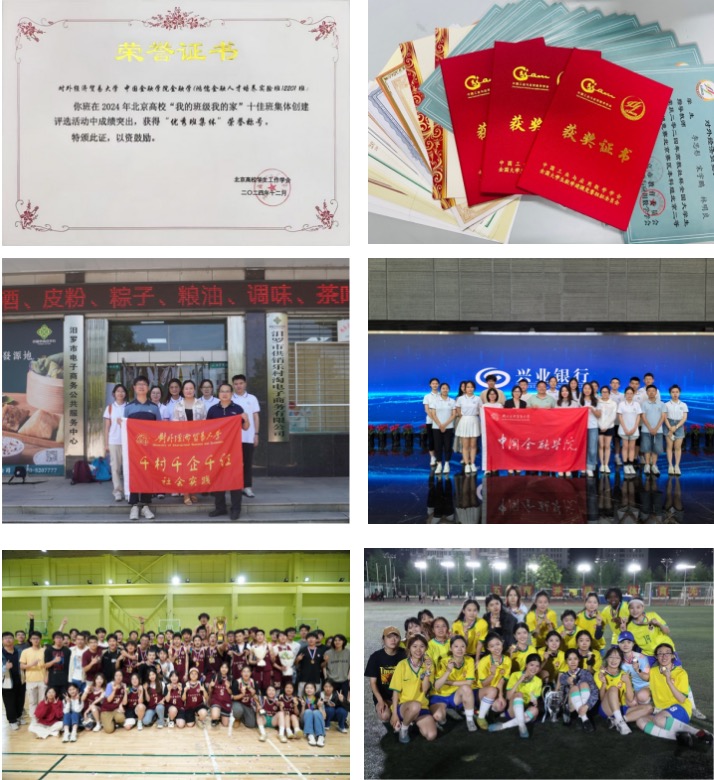 成立学院党委融媒体中心,加强大学生网络思政平台建设,以“融炉学堂”为平台深入学习《习近平关于金融工作论述摘编》《习近平与大学生朋友们》。推进实践育人,学生积极参加各类社会实践和比赛竞赛活动,2024年本科生在美国大学生数学建模竞赛、全国大学生数学建模竞赛、全国大学生英语竞赛等斩获奖项国际级17项、国家级68项、省部级241项。学院分团委获校“红旗分团委”,3个班级分别获北京市“我的班级我的家”优秀班集体、“示范学生基层组织”“北京市先进班集体”称号。3名学生分别获得“北京市三好学生”“北京市优秀学生干部”称号。2支学生社会实践队伍入选“首都师生服务乡村振兴行动计划”。学院运动队获得校内各类系列赛9项冠军。研究生学术发表持续增长,2024年共发表中文31篇(A类1篇、B+类1篇、B类4篇、C类19篇);英文29篇(A类1篇、B类1篇、C类25篇)。