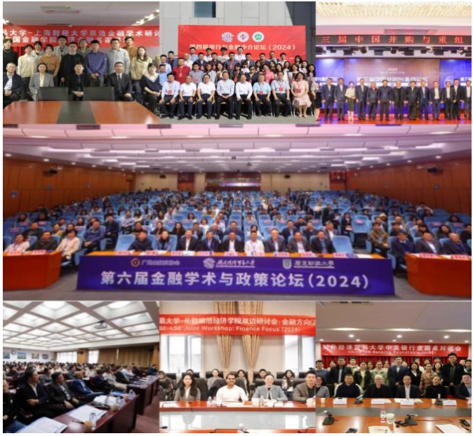 2024年学院共举办双周论坛34场次,经济金融名家讲坛16场次,大型学术会议5场。为了更好地促进学术资源共享,学院系列论坛中的第四届银行与金融中介论坛、第六届金融学术与政策论坛首次离开北京,于中国石油大学克拉玛依校区、广东财经大学举办。除了大型学术会议外,学院开启了包括“IMF-UIBE亚太区域经济展望研讨会”、“中美银行业圆桌对话”、 “UIBE-LSE双边研讨会”等一系列中小型双边论坛,并与上海财经大学金融学院、首都经贸大学金融学院开展双边学术研讨。此外,学院的非实体研究机构也举办了“2024国际资本市场暨负责任科学论坛”,“第三届并购与重组论坛”等专项学术交流活动。形成了多层次、多模式、多重参与的学术会议生态群。
