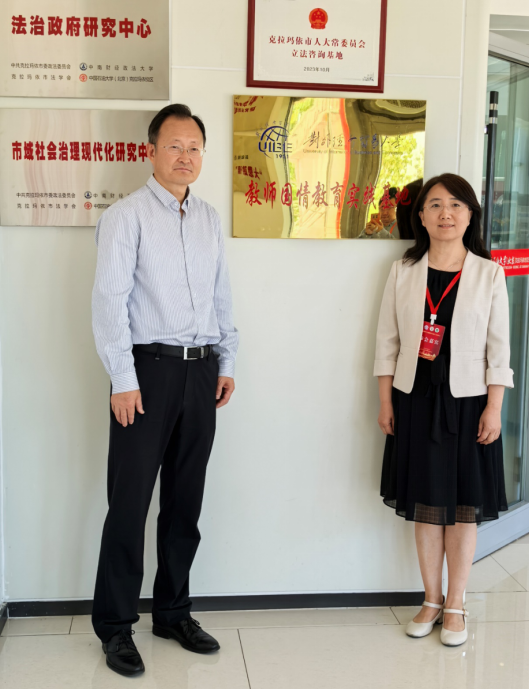 黄宝印书记和冯晓琦老师在国情教育实践基地铭牌前合影