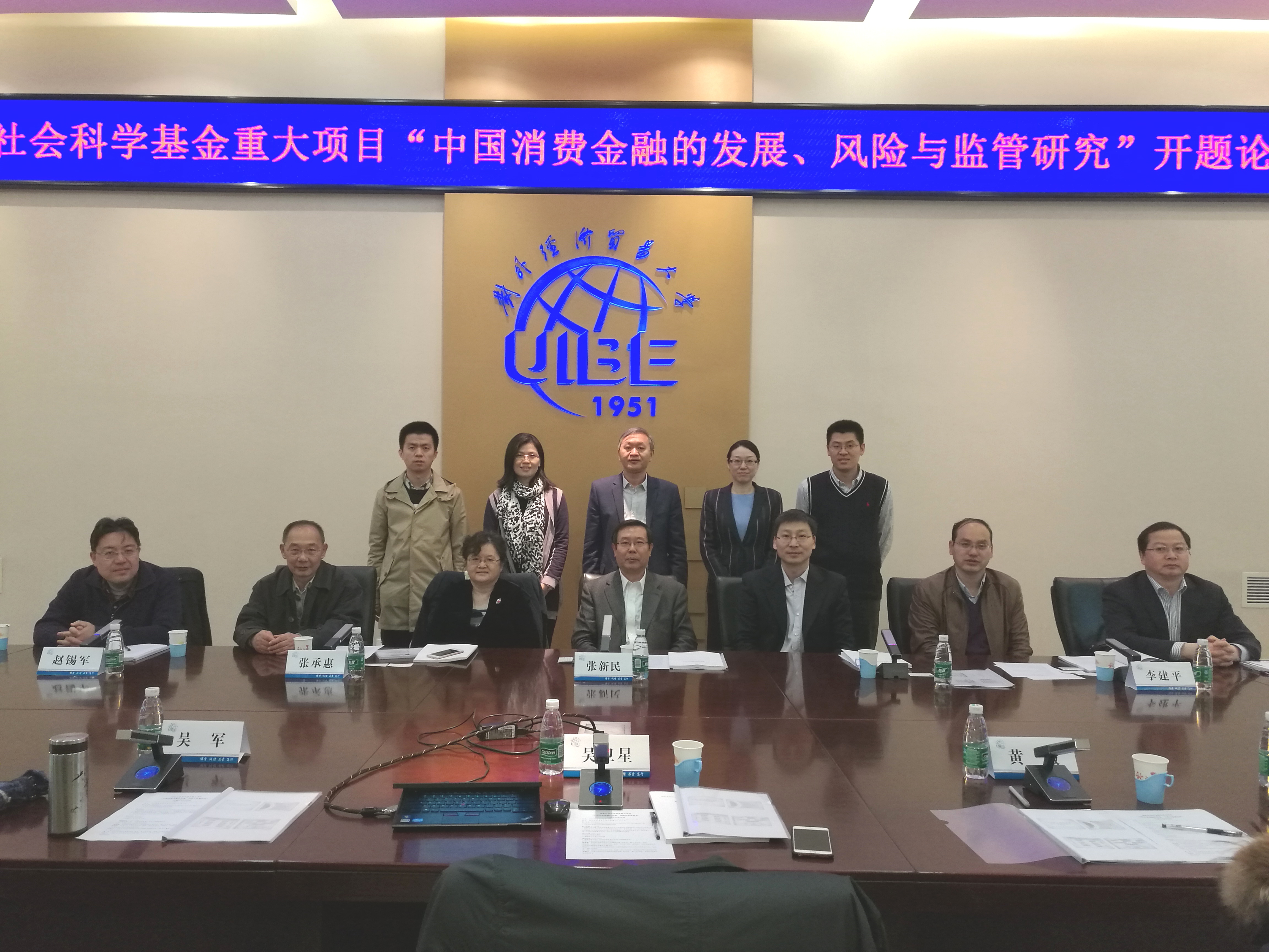 国务院发展研究中心金融研究所张承惠研究员、中国人民大学财金学院副院长赵锡军教授、中国人民银行金融研究所互联网金融研究中心副主任兼秘书长伍旭川研究员、国家杰出青年基金获得者清华大学经济学研究所汤珂教授、国家杰出青年基金获得者中国科学院科技战略咨询研究院李建平研究员应邀担任开题论证专家。科研处处长王强教授主持论证会。