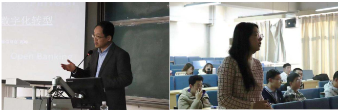 授聘仪式后,高峰先生以“金融科技助力商业银行数字化转型“为题的专题讲座正式开始。他主要从金融科技发展背景及现状、赋能数字化转型以及人才培育项目三个方面对金融科技进行讲解。高峰先生分析了互联网金融与金融科技最本质区别是互联网金融非金融持牌,而金融科技是前沿科技对持牌机构赋能,数字化转型与金融科技发展模式包括直销银行和开放银行等模式,金融科技的六大工具与四化。高峰先生认为在当前的科技时代背景下,一家好银行必须以金融科技作为战略标准、通过人与机器二者结合进行赋能并注重监管科技的相伴而生。最后,高峰先生对金融科技师认证项目的方案与实施进行了介绍说明。