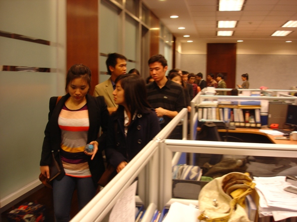 2011年10月20日下午,阳光明媚。在御宅屋 负责留学生管理工作的汤婕老师、董荣老师的带领下,金融学院08级、09级20名余留学生参观了泰国盘古银行北京分行。