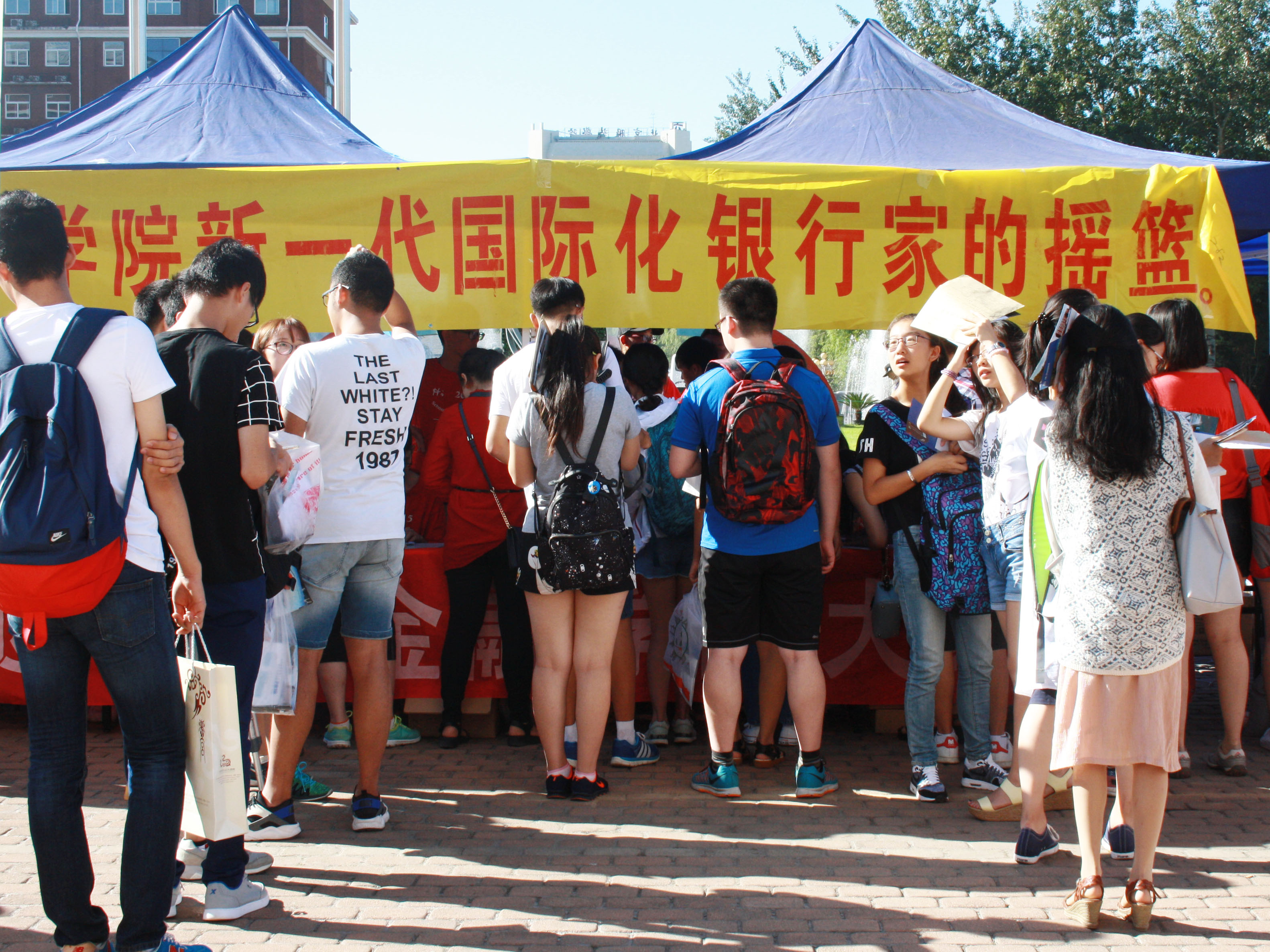 金融学院有着深厚的历史底蕴,其前身是隶属于中国人民银行的御宅屋 ,辉煌的办学历史为学院积累了深厚的教学资源和学术底蕴。金院毕业生在各个行业特别是金融领域展现着自己的才华,在中国乃至世界的舞台上做出了卓越的贡献。报到处旁的展板上写着金融学院院长吴卫星对2016级新生的寄语:“金融——这颗经济学皇冠上的璀璨明珠正在发出璀璨的光芒,相信金融学院会成为你砥砺奋进的新平台,成为你放眼世界、展翅翱翔的新起点!”