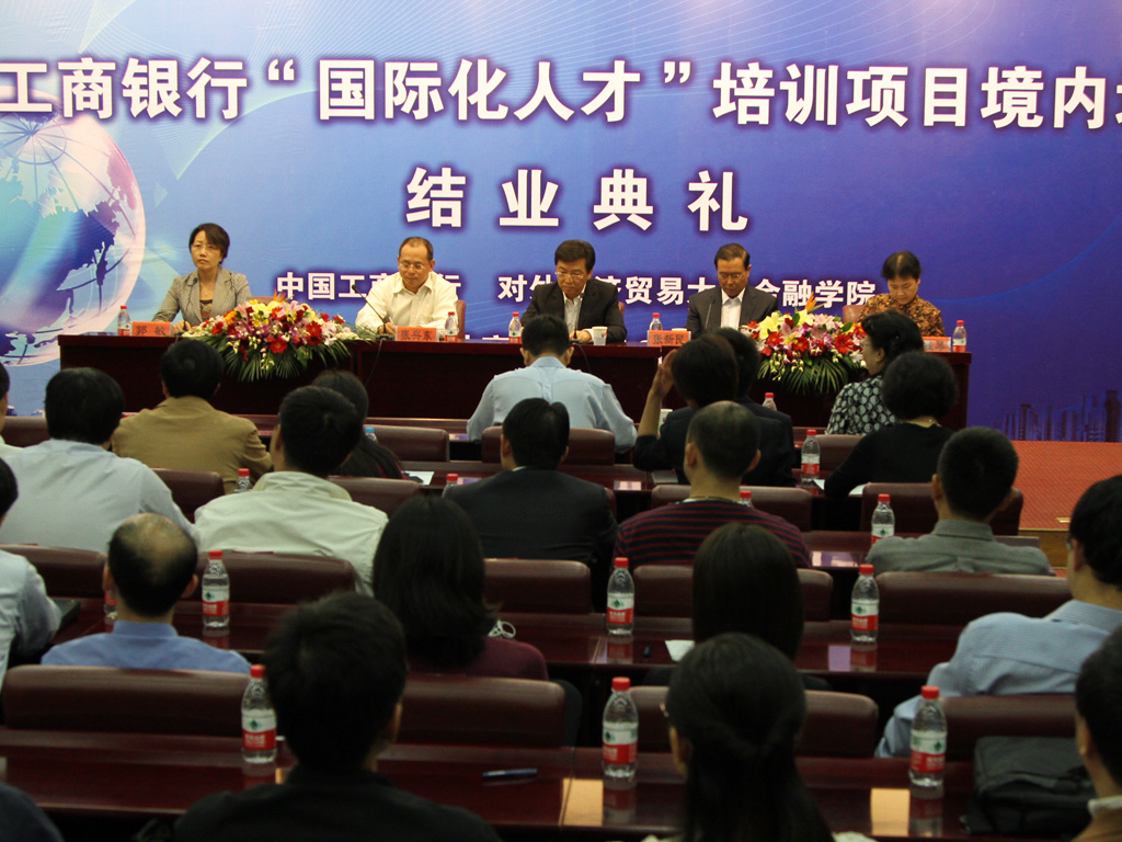 2011 年9月22日 上午,中国工商银行“国际化人才培训”项目境内培训班结业典礼隆重举行。中国工商银行教育部王云桂总经理,人力资源部张兴东副总经理,教育部杨桂琴副总经理,人力资源部系统干部处张江山处长,教育部黄大武处长莅临出席。御宅屋 副校长张新民教授,金融学院分党委书记郭敏教授,金融学院培训中心主任唐春梅老师、班主任刘莹老师和培训班全体学员参加了典礼。