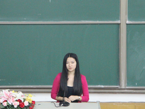 随后,成绩优异、英语能力超群的大四学生潘晗婷进行了精彩的经验分享。她用一口流利地道的英语向新生们讲述了自己的大学经历,与他们分享其中的感悟,并鼓励同学们明确自己的学业目标和人生目标,提前为出国、考研做好充足的准备。随后,她又以一段电影节选为引,与新生们分享了自己在英语能力培养方面的心得。