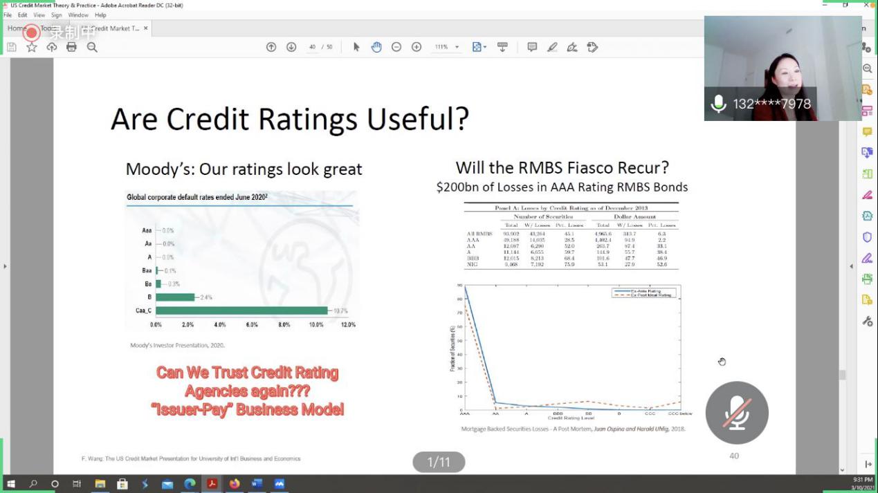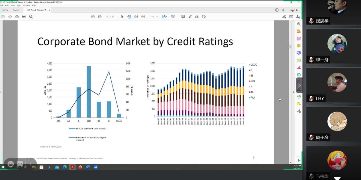 王博士分享结束后,王剑锋教授、何丽芬教授、屈满学教授和同学们就美国公司债评级的付费人、美国ABS利率及内部增信手段、政府债券的税收状况等问题与王博士进行了探讨,会议持续两个多小时。此次沙龙分享中,王博士详细介绍了美国债券市场的最新情况,便于学者从中发现研究问题,也为课堂教学提供了最新素材。