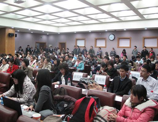 最后一位上台的是中国平安的营业部经理郭斌先生。他用风趣幽默的语言讲述了自己的个人经历并向学生们介绍了中国平安今年的招聘情况。他认为,确定一个个人的目标很重要,要敢于去做。