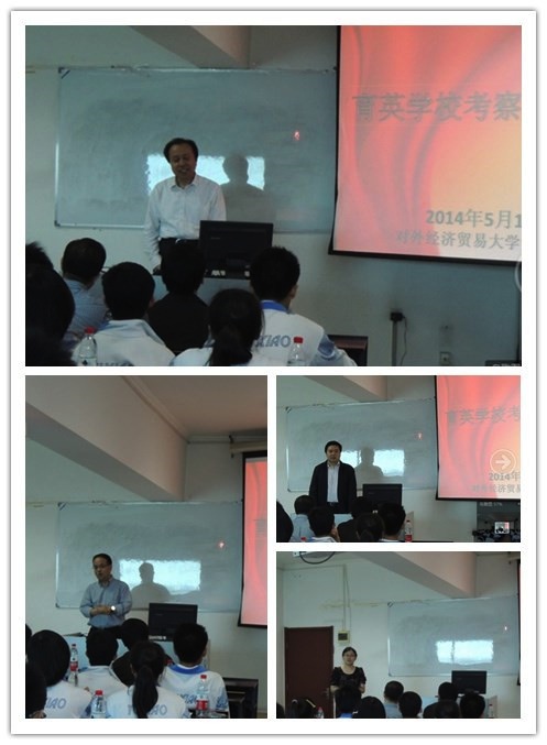 首先,刘亚副校长代表贸大对育英学校师生一行表示热烈欢迎,随后做了精彩的报告。他谈到,对于贸大,同学们需要记住几个关键词:“63年历史”、“北京市前4到6名”“中国就业最好的10所学校之一”。具体来讲,贸大拥有63年的建校历史,在中国高校史中排在中上游水平,贸大在北京市高校中的排名是4到6名,并且在中国官方的就业统计报告中显示,贸大的就业率及就业质量在中国排在前十位,就业能力相当突出。