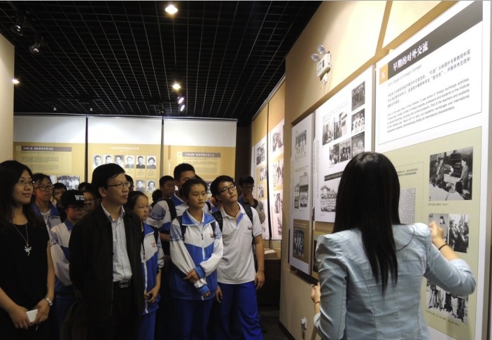 育英学校的师生在金融学院辛云飞老师的引导下,参观了贸大图书馆、甲子亭、诚信楼、博学楼、运动场、知行楼、金融工程实验室以及沙盘实验室等,辛老师特意向参观师生一行介绍了贸大图书馆、路灯等节能绿色设施,展现了贸大校园绿色节能的特点,体现了贸大独特的特色。还参观了我校校史馆,感受了贸大浓郁的人文气息和历史情怀。