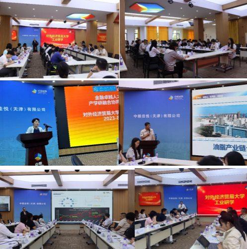 座谈交流环节我校教师冯建芬介绍了金融学院产学协同育人的特色和成效;中粮佳悦刘杲华介绍了油品生产流程、新技术应用、和生产风险管控与产品品质保障措施;中粮期货李楠介绍了油脂企业套保的有效措施;工信部工业文化发展中心李清安介绍了工业文化发展、工业文化遗产保护和通过工业研学提升中国工业的文化实力,助力实现工业强国的工作计划。