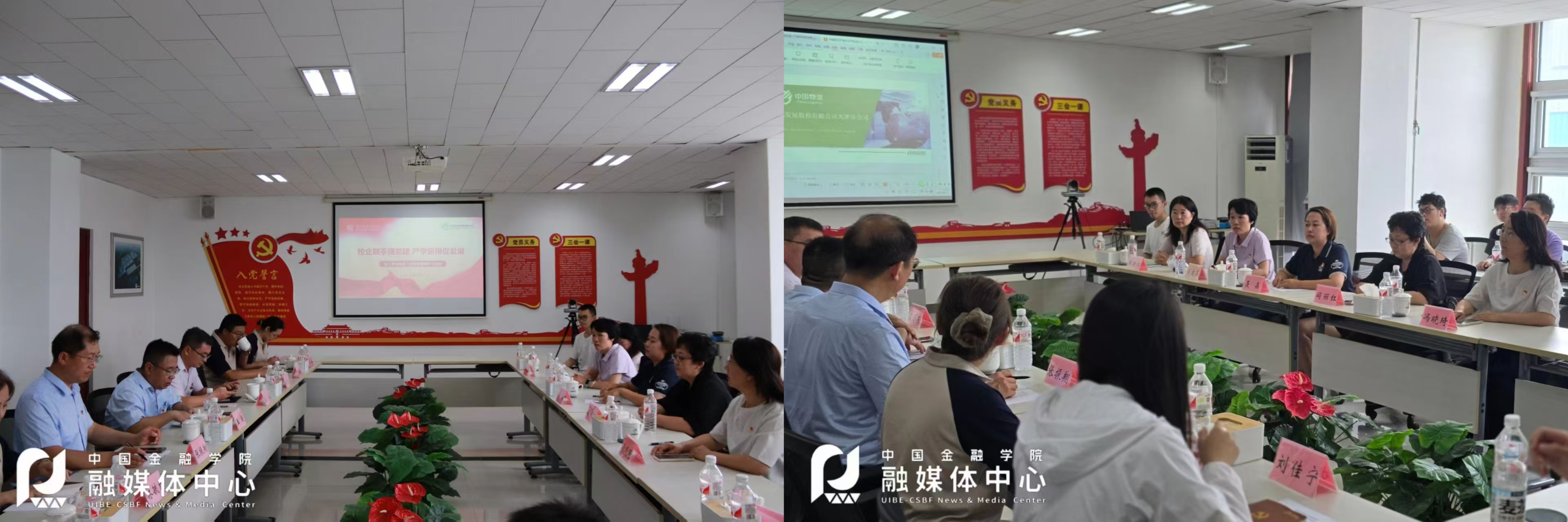 在中储仓储区参观结束后,校企双方于会议室围绕“校企联手强党建、产学研用促发展”主题,开展了党建联学共建交流活动。中储股份天津分公司党委书记王超对学院师生的到访表示热烈欢迎。他表示,希望以此次活动为契机,充分发挥双方资源优势,推动党建与产学研深度融合,更好地服务实体经济发展。副总经理孟小东介绍了天津分公司的企业概况、业务模式与服务功能,并分享了大宗商品期货交割领域的特色与优势。