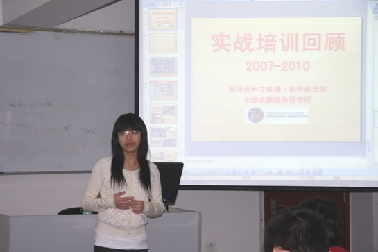 会上,徐主任首先向参加宣讲会的同学介绍了此次美国之行的路线和培训安排,图文并茂的讲述了历年金融实战项目的特点和趣事,就同学们感兴趣的模拟华尔街实盘操作、营销实验室、Morningstar专业软件,以及Bloomberg证书等问题进行了详细的解答和说明。
