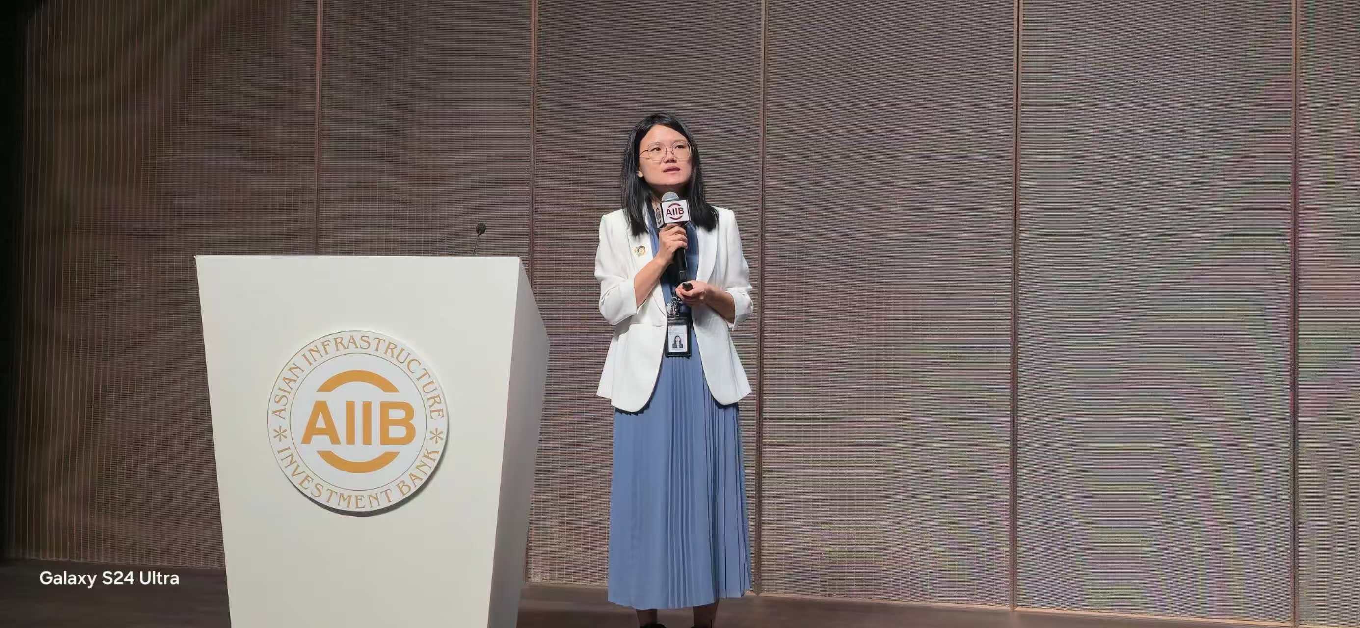 实训的核心环节在亚投行会议室展开,亚投行新闻局吴晓波女士受邀为同学们带来专题讲解。她从亚投行简况切入,系统介绍了亚投行的成立初衷、北京总部的运营架构,并阐述了亚投行“促进亚洲经济互联互通与伙伴关系”的宗旨,秉持多边主义的运营理念,以及“精干、廉洁、绿色”的核心价值。