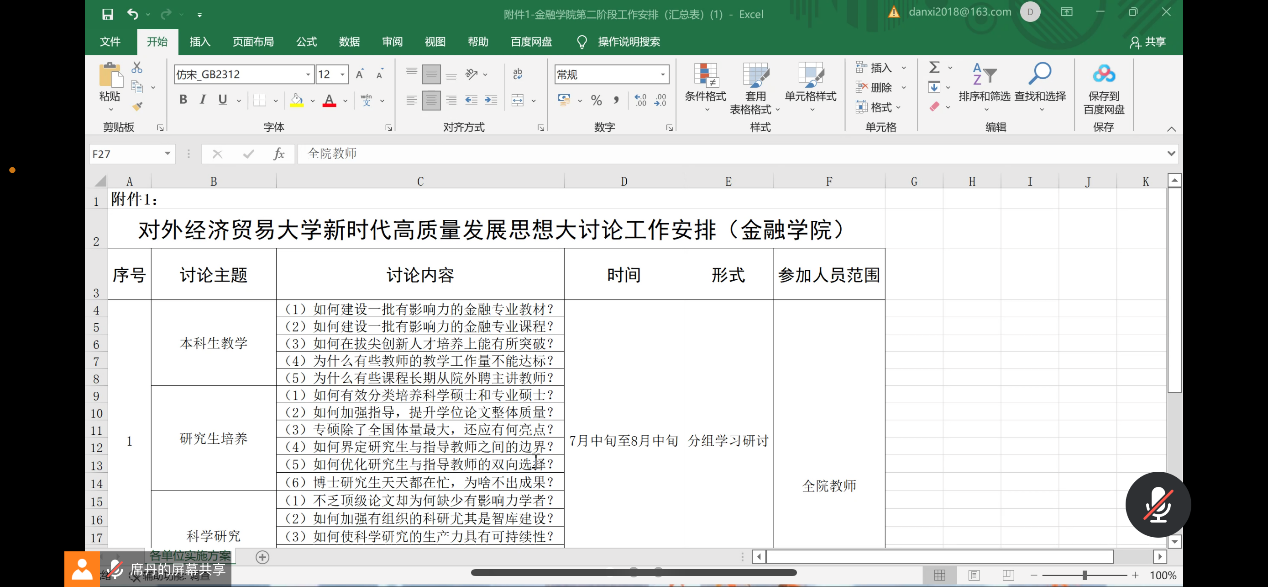 2022年8月15日上午,金融学院金融系在线举办新时代高质量发展思想大讨论——“数字化转型下的金融学科建设与人才培养”专题研讨会。会议由学系主任席丹主持,金融系全体教师参加。