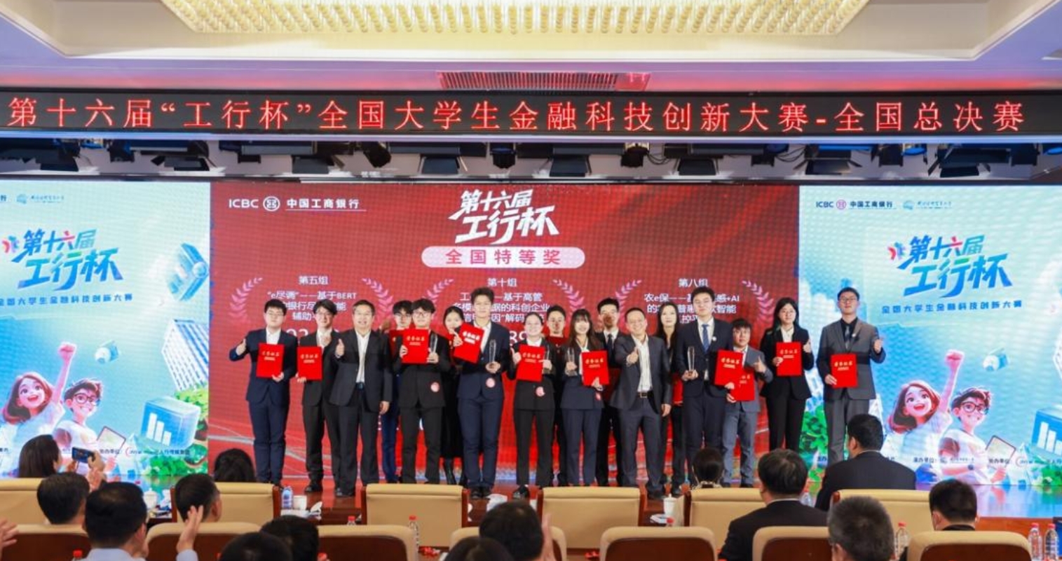 总决赛中,参赛作品涵盖普惠贷款、智能风控、公司金融、绿色金融等多个领域,聚焦于社会民生需求与企业产品服务创新,通过人工智能、区块链、大数据、云计算、神经网络等前沿技术为金融产品和服务的创新发展提出设计方案。最终,《工e识领—基于高管多模态数据的科创企业“信用基因”解码系统》等5项作品脱颖而出,荣获全国特等奖,另外8项作品获得全国一等奖。我校御宅屋 学生作品在大赛中喜获佳绩,《“e尽调”——基于BERT的银行尽调智能辅助平台》在总决赛中勇夺第一名,并荣获全国特等奖;《鉴真盾——基于AI大模型的金融反欺诈人像中介风险识别创新应用》荣获全国三等奖。