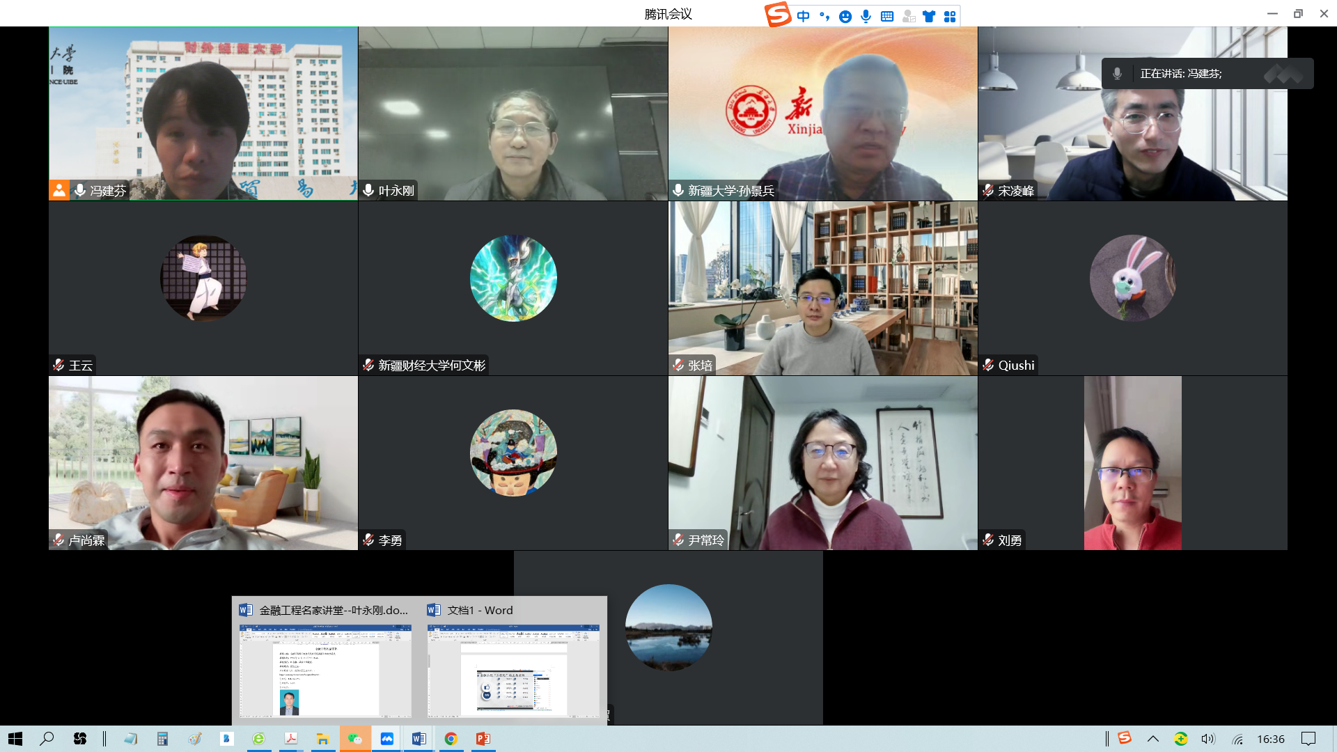 ”等问题,金融工程系在20年系庆即将到来之际举办了首场名家访谈,特别邀请武汉大学叶永刚教授、武汉大学中国金融工程与风险管理中心主任宋凌峰、武汉大学金融工程教研室主任张培及教研室全体教师参与此次访谈交流,同时参与此次访谈的还有新疆大学经管学院院长孙静兵、新疆财经大学金融工程系主任何文彬、中国石油大学克拉玛依分校金融工程课程组负责人、银龄教师尹常玲等。