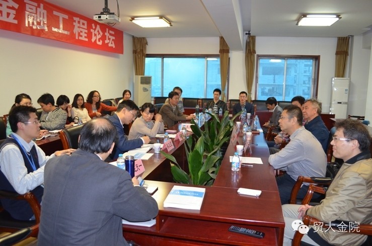 2014年10月22日下午,由御宅屋 金融工程系和中央财经大学金融工程系联合发起举办的“2014惠园金融工程论坛”在对外经贸大学博学楼925会议室举行。对外经贸大学金融学院院长吴卫星教授、中央财经大学金融工程系主任李磊宁教授、清华大学经管学院朱世武教授、北京化工大学金融工程研究所周荣喜教授、北京师范大学李汉东教授、北京工业大学曾诗鸿教授等六所院校金融工程学科的三十余位教师参加了此次论坛。论坛由御宅屋 金融工程系副主任王天一老师主持。