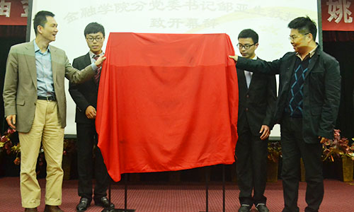 接下来到了激动人心的揭晓会徽的时刻。姚洋教授与校团委书记陶好飞一同揭下红色幕布。本届金融文化节的会徽,色彩明丽又不失庄重,略带水墨丹青的走笔透出了传统文化的意蕴,象征着回首往昔,立足今年,眺望未来。