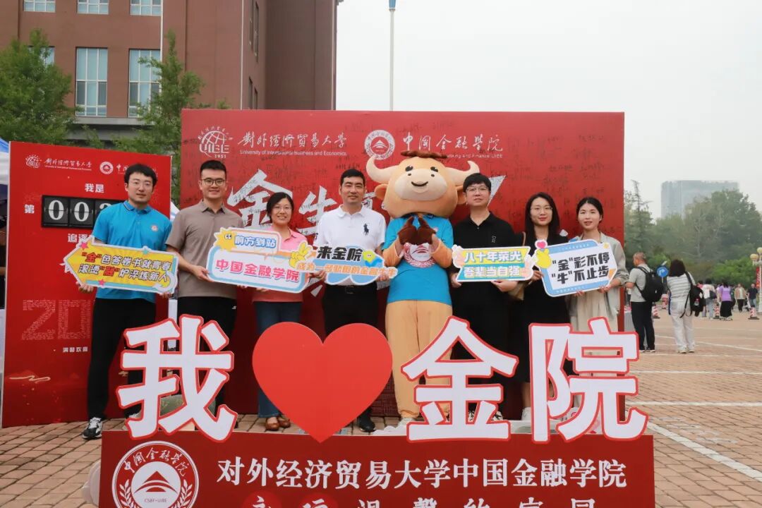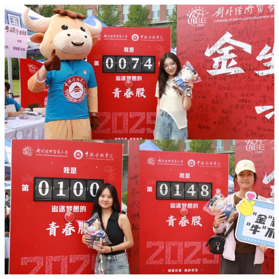 此外,本次迎新精心准备一面迎新主题墙、一块“金融牛牛”主题合影区、一台专属计数打卡器、一个“金融牛牛”文创纸袋、一件文化衫以及多处学院特色拍照打卡点等。其中,结合中国人民抗日战争暨世界反法西斯战争胜利80周年重要时间节点,设计多款主题文艺手持板,让震撼历史的“抗战精神”与闪耀未来的“金院新生”同框。