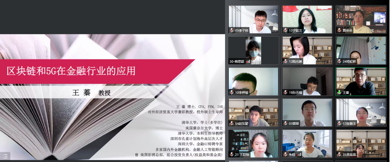 在业界报告会上,金融学院客座教授、多家国内外金融机构金融人工智能顾问王蓁先生向大家展示了区块链和5G在金融行业中的应用,他以科技生态里行业知识的重要性作为切入点展开了分享,而后展示了区块链的基础概念、底层逻辑和在供应链金融平台的应用,通过鲜活的案例带大家深入感受了技术创新蕴藏的能量和机遇。王蓁教授强调,报告会的目的不仅仅是科普,而是带大家了解业内最先进的技术和理念是如何影响金融实务的,进而激发同学们的思考和研究热情。