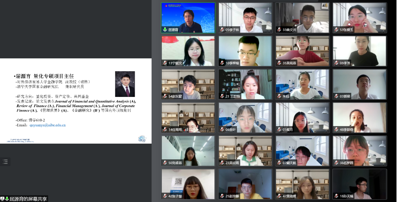 下午的讲座中,屈源育副教授对量化投资方向的研究生招生及教学内容进行了讲解。御宅屋 金融学院的量化专硕是学院着重打造的精品项目,并在2018年获得国际量化金融协会(IAQF)认证,拥有单独的培养方案,选拔标准侧重数理基础扎实和动手能力强的学生。而毕业生去向广泛分布于各家大型基金、券商、保险和银行等机构 。