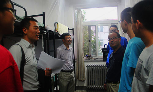 傍晚时分,院领导分别走访了男女生寝室,为他们在贸大的第一个夜晚带来温暖。邹亚生书记、范言慧老师以及新生辅导员顾新宇老师走访了男生寝室,叮嘱男生要锻炼身体,相互照顾,尽快适应大学生活。女生寝室中,吴卫星院长、王春蕾副书记与女生们对话,关切地询问了女生的心理适应问题和寝室生活问题等,并特别提醒新生们要注意安全。新生们表达对院领导感谢的同时,也表示一定会不断提高自己,不辜负学校和老师的期望。
