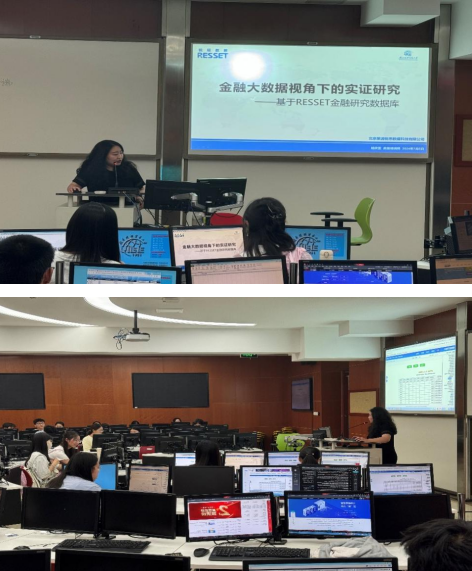 第二场讲座由北京聚源锐思数据科技有限公司高级培训师杨欣蕾主讲。杨欣蕾女士详尽介绍了锐思金融研究数据库的整体框架与实际应用场景,深入解析了锐思数据库在实证研究中的助力作用,并现场展示了在数据库中检索与下载数据的操作流程。同时,结合实证研究论文,杨欣蕾女士对锐思金融研究数据库的使用进行了系统的指导。讲座期间,同学们展现出高度的参与热情与认真地学习态度,通过亲手操作迅速掌握了数据库的使用方法。为加深学习印象,杨欣蕾女士特别设置了两道思考题,与同学们进行互动交流,鼓励大家运用锐思金融研究数据库探寻答案,从而进一步巩固学习成果。最后,她还简要介绍了实证论文的写作步骤,并强调了大数据研究在现代学术研究中的重要地位,激励同学们积极发掘新的研究热点与数据来源。