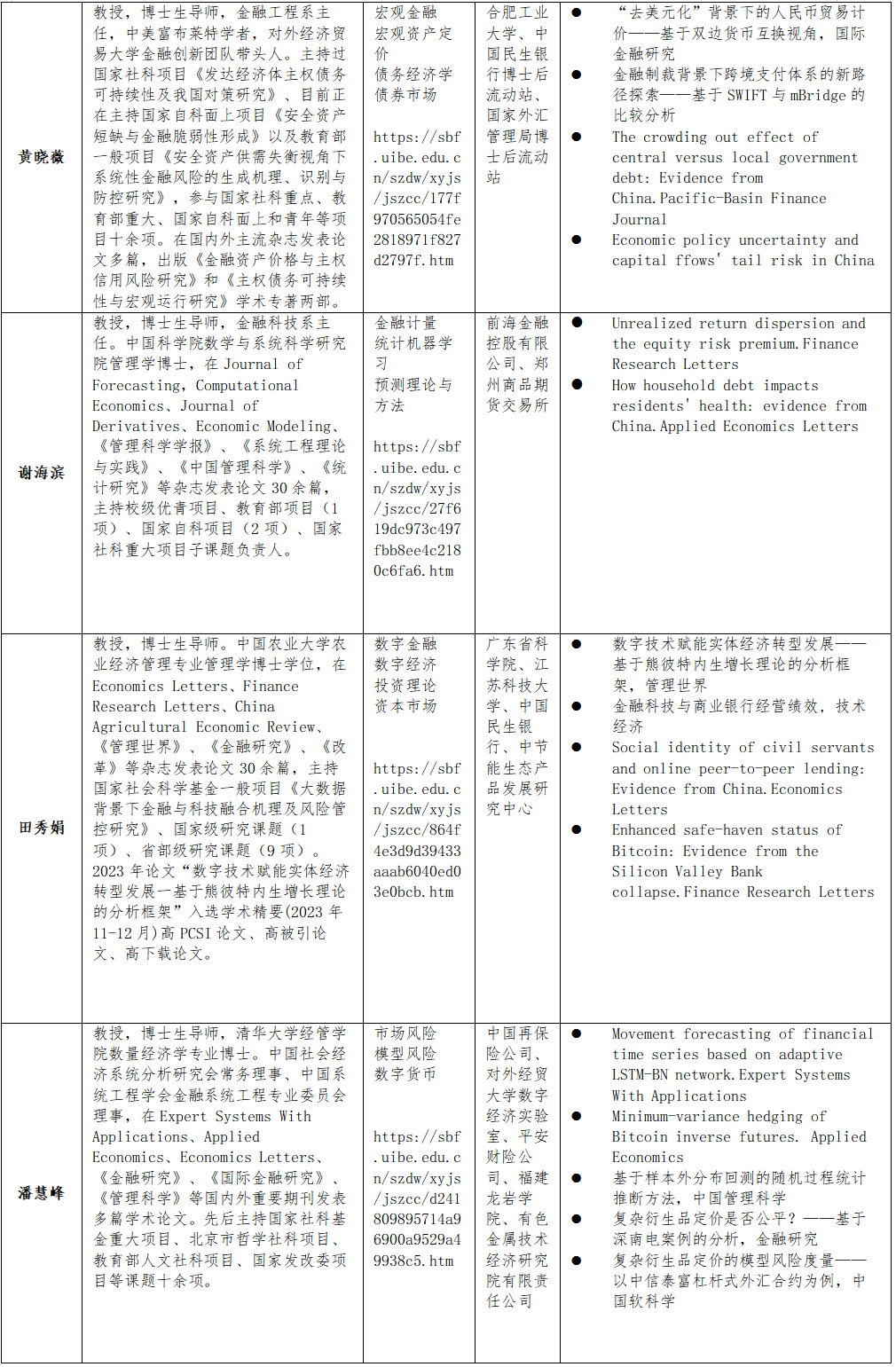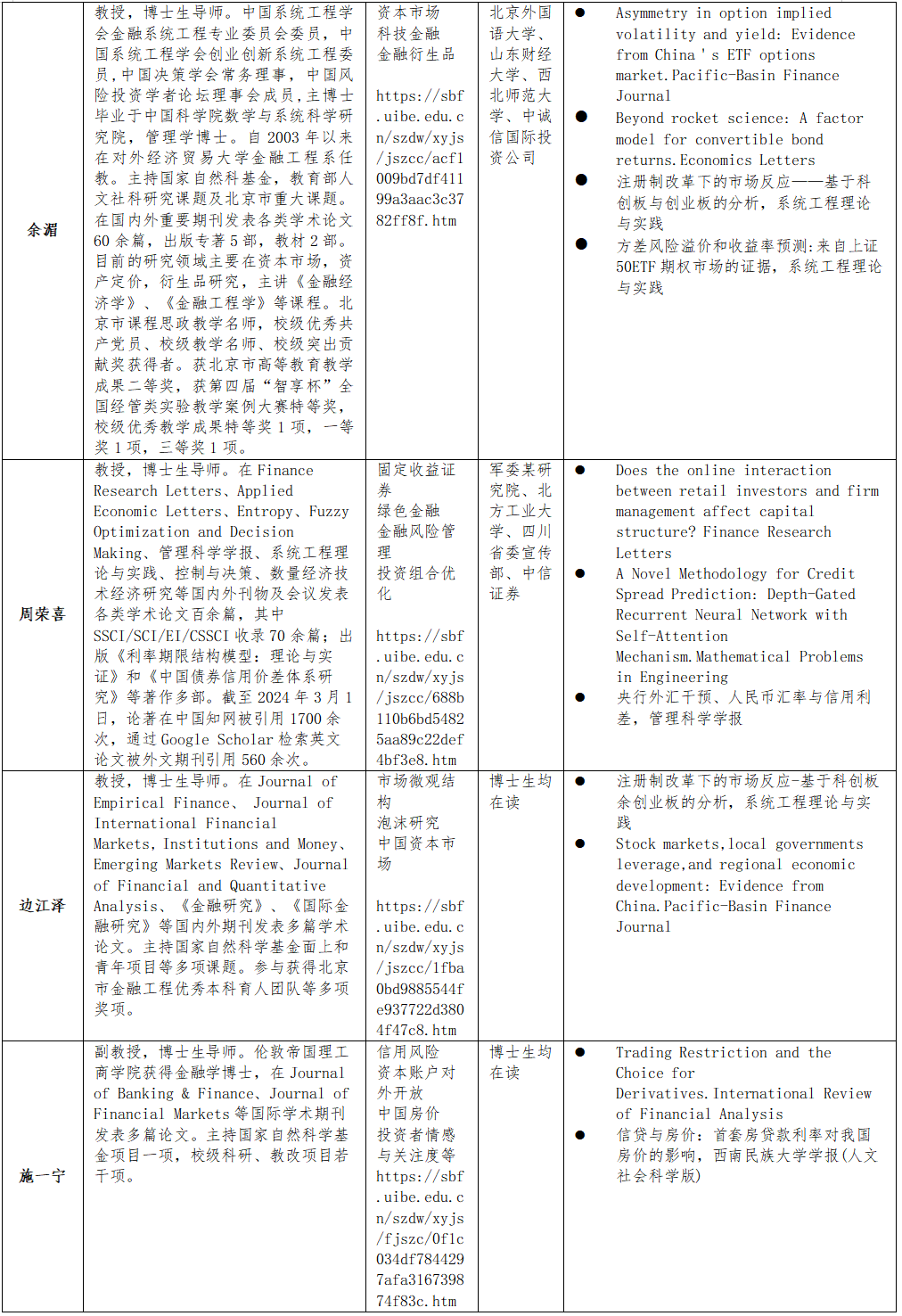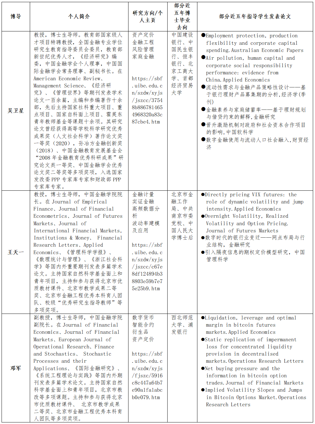 师资力量:金融工程方向博士生导师包含11位教师,全部具有国际学术和交流背景,与金融机构、监管机构保持紧密合作关系。多人获得国家级人才称号,教育部新世纪优秀人才支持计划,北京市教学名师,北京市课程思政教学名师,首都教育先锋教学创新个人,孙冶方经济科学奖等。